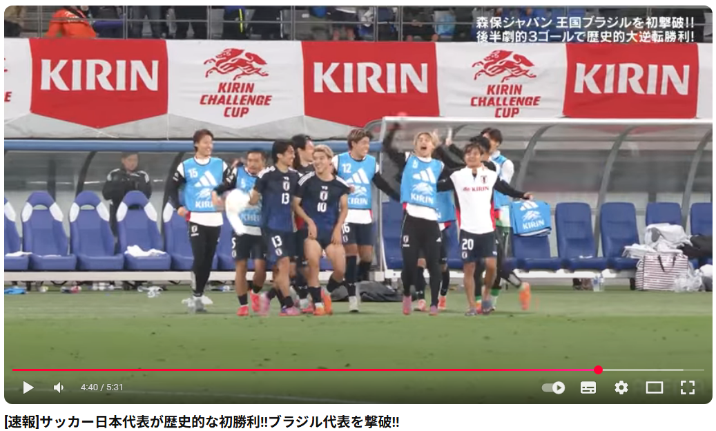 昨日2025年10月14日はキリン・チャレンジカップサッカーの対ブラジル戦が行われ、代表戦で史上初めて勝利をもぎ取りました(祝)!!