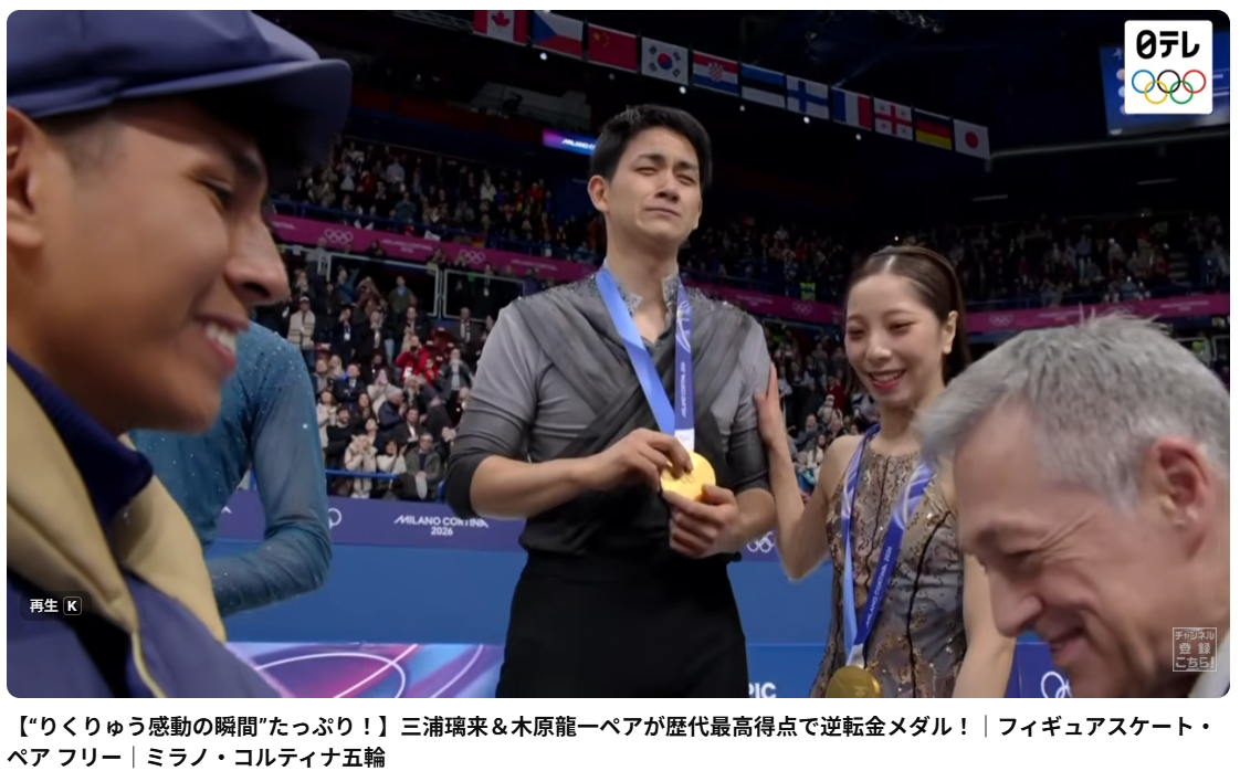 昨日のフィギュアスケート・ペアのフリーで「りくりゅう」が大逆転で金メダルを獲得できたのには感動でした。